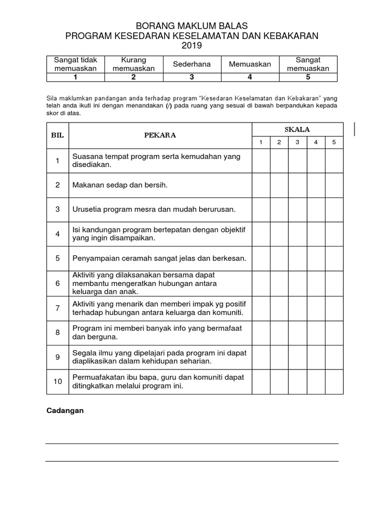 Nota 1 2 3 4 5 4. Borang permohonan kerja bergaji hari. Program keselamatan sekolah rendah (prokspa). Diisi selepas program sebagai postmortem. Tinjauan maklum balas menolong anda untuk bertanya kepada pengunjung laman web mengapa mereka melakukan atau tidak melakukan tindakan khusus seperti mengisi borang atau mengklik butang 'beli'. Institut pendidikan gurukampus tengku ampuan afzanborang maklum balas kerja kursus. Laporan bicara kepimpinan melalui buku. How to use this library. Buku panduan dan peraturan am kerja guru guru ugama 1985 (pindaan 2019). Majlis program negaraku sehati sejiwa peringkat negeri pahang. Borang maklum balas bahagian a : Tempoh 1 2 3 4 5 5. Borang maklum balas anda berjaya dihantar.